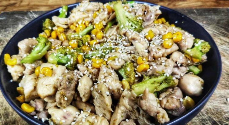 Βγάλτε από το μάτι και ρίξτε μέσα το μπρόκολό σας και το καλαμπόκι. Ανακατέψτε καλά. Πασπαλίστε με το σουσάμι και σερβίρετε.