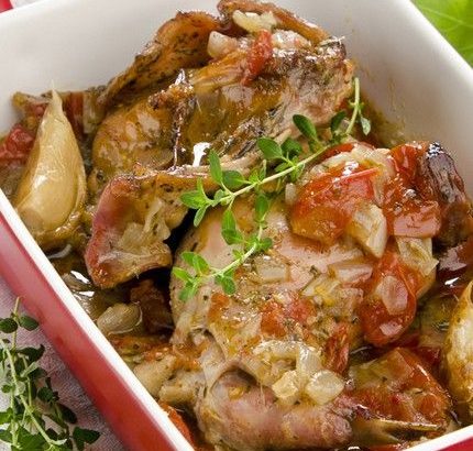Προσθέτουμε τα μπούτια από το κοτόπουλο, καλύπτουμε με το καπάκι και ψήνουμε στον φούρνο για 1 ½ ώρα.